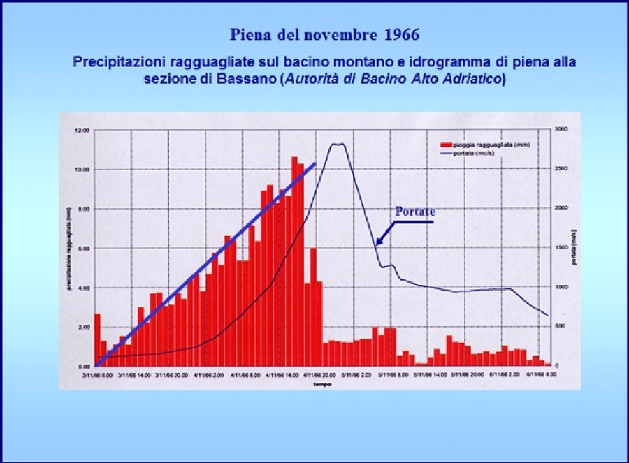 Un diagramma che lega le precipitazioni e le portate del Brenta di quei giorni è allegato (da una relazione di D'Alpaos)